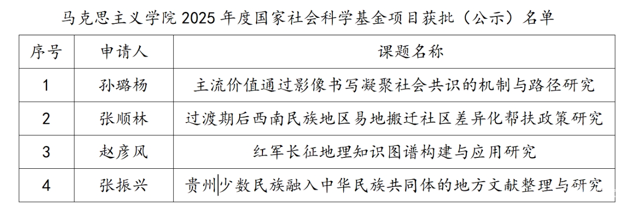 9月5日,全国哲学社会科学工作办公室公示了2025年国家社会科学基金年度项目立项名单,我校国产自拍 3项国家社科基金年度项目喜获立项公示,分别是孙璐杨老师的《主流价值通过影像书写凝聚社会共识的机制与路径研究》、张顺林老师的《过渡期后西南民族地区易...