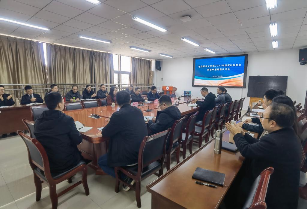 为提升学院教师国家社科基金项目申报质量,11月25日,国产自拍 、党史党建研究中心在南校区善思楼(南)7楼会议室联合举办了2022年国家社科基金项目申报选题论证会。院党委副书记王万江、拟申报教师和无教学任务教师参会,会议由学院党委书记、党史党建研究中心主任黄鑫权主持。