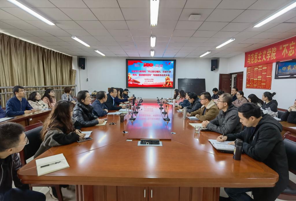 党史学习教育暨“牢记殷切嘱托、忠诚干净担当、喜迎建党百年”专题教育动员大会在学院会议室召开。会议由学院党委书记黄鑫权主持,学院院长杨成兰、党委副书记王万江、党委委员李惠华、罗敏出席,全体党员参加。