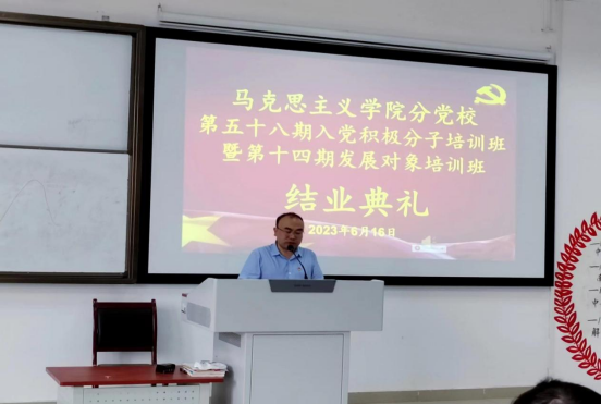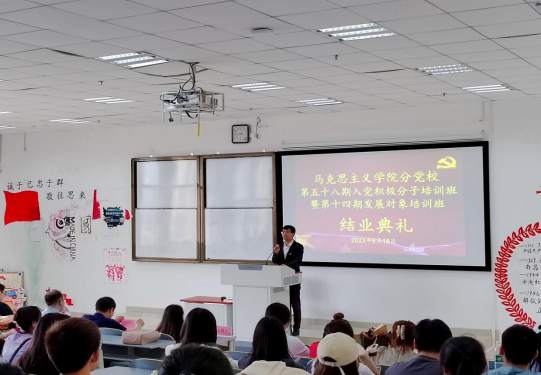 6月16日,学院分党校在九思楼4205教室举行第58期入党积极分子培训班暨第14期发展对象培训班结业典礼,学院党委副书记王万江、分团委副书记马景瑶、班主任赵兴平、学生党支部成员黄连舟及全体学员参加,结业典礼由学院学生党支部书记杜美瑾主持。