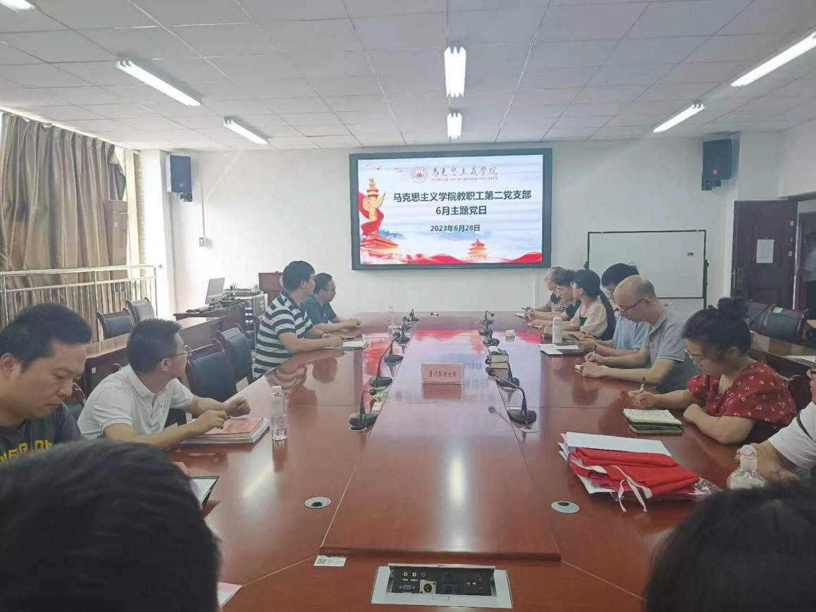 为强化党员的身份意识和责任意识,加强党员党性教育,充分发挥党员先锋模范作用,6月28日,教职工第二党支部在会议室召开6月主题党日活动,支部全体党员参加,活动由支部书记赵彦风主持。