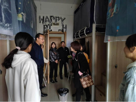 为深入了解学生的思想动态和生活、学习情况,认真听取学生的基本诉求和困难,促进师生之间的交流,10月27日中午12:30,学院党委书记黄鑫权、院长杨成兰、党委副书记王万江、博士禹辉映、全体辅导员及班主任老师分成2组走访慰问了国产自拍