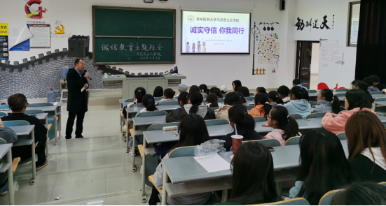 在九思楼4207教室开展“诚实守信,你我同行”诚信主题教育班会,学院党委书记、党史党建研究中心主任黄鑫权出席,辅导员周玄主持,2021级全体学生参加。