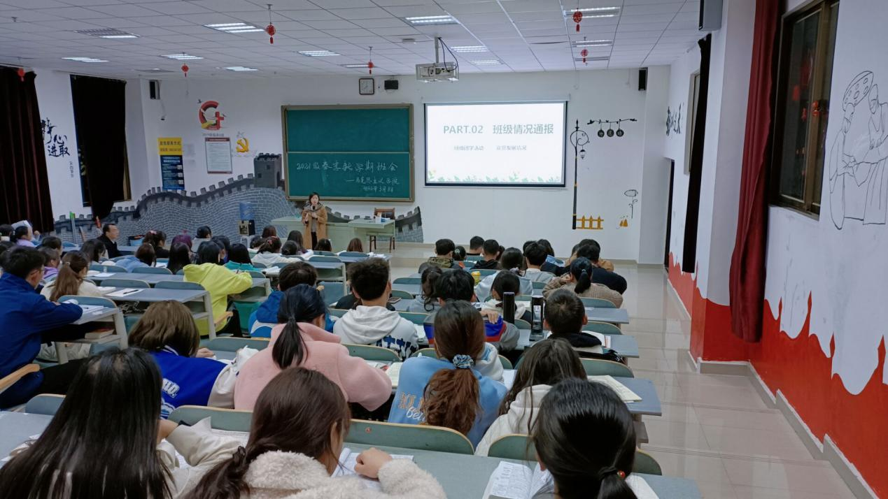 周玄首先就“上学期的收获、遗憾与本学期的学业规划及假期做的最有意义的一件事”为话题,和同学们进行交流分享,同学们踊跃发言,积极参与话题讨论,通过这个环节,也让同学们明白了,要善于做学期总结,清楚自己今后努力的方向。其次,周玄从班级团学活动、党员发展现状、期末和四级考试成绩、寝室安全文明、意识形态安全等方面作情况通报,指出上学期班级存在的问题以及本学期的班级建设计划。最后,周玄再次强调了目前因疫情原因校园封闭管理,所有同学不得破坏隔离网私自外出,以及请销假规定,提醒学生注意人身安全、财产安全问题。