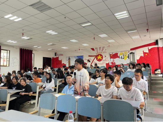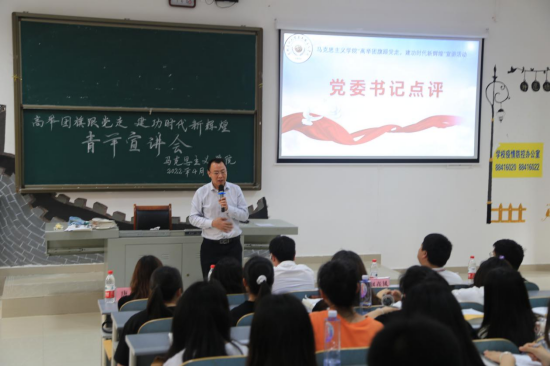 为传承“五四”精神,致敬峥嵘岁月,献礼建团百年,4月28日,国产自拍 在九思楼4207教室开展“高举团旗跟党走,建功时代新辉煌”五四宣讲活动。学院党委书记黄鑫权、辅导员周玄、学业导师赵彦风、王东、唐倬、陈兴明、肖蓉参加了活动。活动由院学生会干事余谊、刘蓬主持。