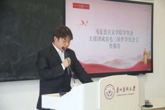 第一次学生代表大会在善思楼R105教室举行。学院党委书记黄鑫权、党委副书记王万江、学院分团委副书记马景瑶、校学生会主席团成员吴征香、法医学院学生会主席赵骏诚及各年级学生代表和学生会全体成员出席。