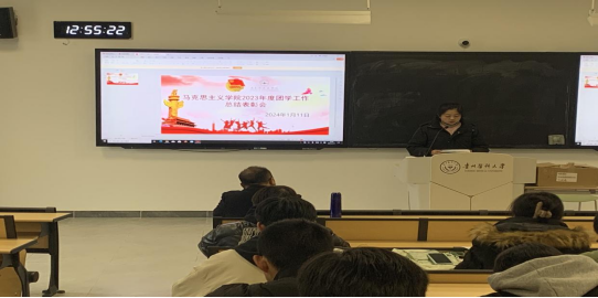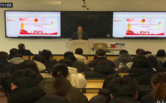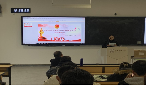 马景瑶对学院2023年度团学工作进行全面总结。他指出,过去的一年,学院团学工作队伍紧密围绕学校、学院中心工作,以服务青年学生成长为宗旨,认真履行职责,在团委工作、学生工作等方面取得了很大的进步。同时,学院团学工作还存在开展志愿服务活动的数量不够多、班级管理水平有待提升等问题。他表示,学院团学工作队伍会不断提升自身综合能力和团学工作水平,加强制度建设,抓好工作落实,争取取得更大成绩,为推进学校团学工作高质量发展作出新的更大的贡献。