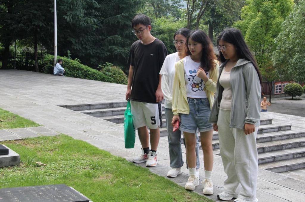抵达陵园后,实践队员怀着无比崇敬的心情,瞻仰烈士纪念碑,并仔细阅读墓碑上的文字,了解英雄烈士的生平事迹,深刻缅怀先烈们为民族独立、人民解放和国家富强、人民幸福建立的不朽功勋。在肃穆的气氛中,全体队员面对烈士墓碑默哀,表达对革命先烈的深深敬意和追思之情。