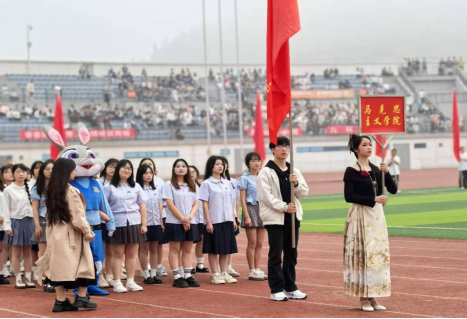 学生方阵以整齐划一的步伐,铿锵有力地步入会场,他们神采奕奕,口号响彻云霄,尽显马院学子积极向上的昂扬风貌。