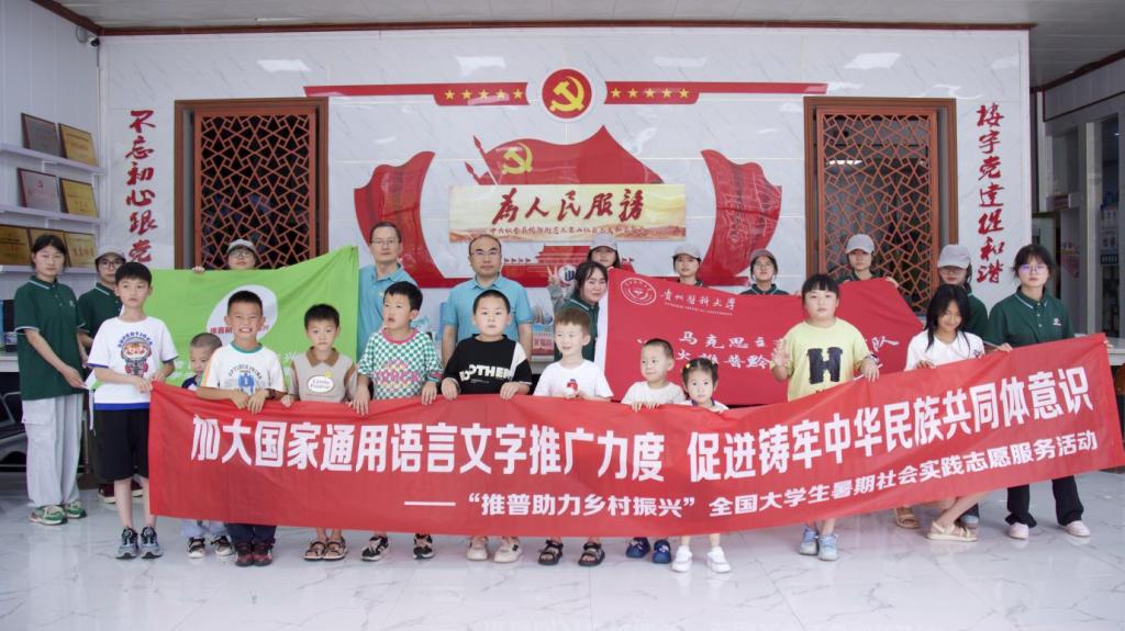 星火推普黔进实践队全体成员在学院党委副书记兼纪委书记王万江及分团委副书记、辅导员马景瑶的带领下赴毕节市织金县绮陌街道三架山社区开展“童声同语”推普社会实践活动。