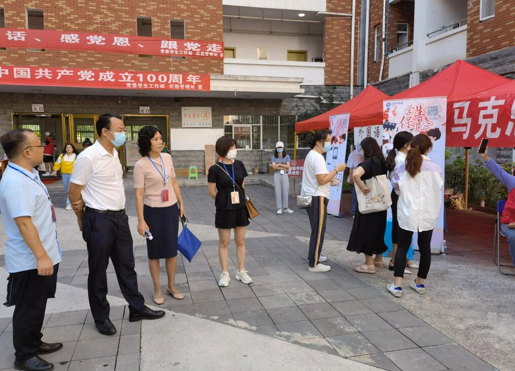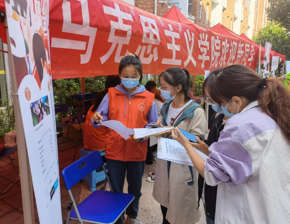 今年国产自拍 迎来首届新生,学院领导高度重视,多次召开党政联席会及迎新专题会,制定迎新方案,部署相关工作,保证迎新工作顺利有序进行。8月28日,国产自拍 思想政治教育专业的100名2021级本科新生报到入学。学院党委书记黄鑫权、院长杨成兰、副书记王万江到迎新现场检查指导工作。