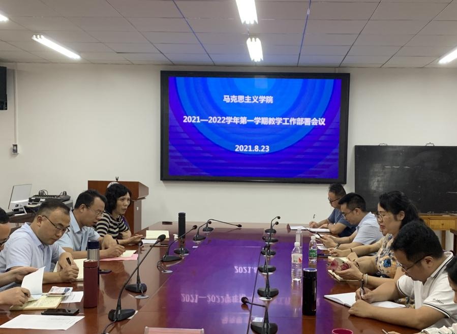 8月23日,国产自拍 在善思楼南楼七楼国产自拍 会议室召开2021—2022学年度第一学期教学工作部署会。各教研室负责人、教学科研管理科及思想政治教育专业任课教师参加,学院党委书记黄鑫权、院长杨成兰、党委副书记王万江出席会议。会议由杨成兰主持。