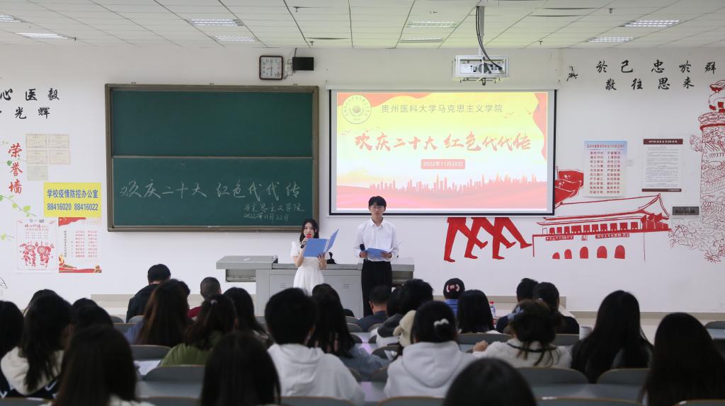 在九思楼4306教室举办“欢庆二十大 红色代代传"主题演讲比赛。学院党委书记、党史党建研究中心主任黄鑫权,学院院长杜凯,副院长禹辉映,学业导师杨若飞、赵彦风、张振兴,辅导员李杏春和全体学生参加本次比赛出席活动。本次活动由学生余谊、雷德琴同学主持。