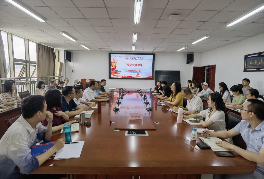 党委副书记王万江同志以“赓续红色血脉,传承革命精神”为主题,从党的百年光辉历程、中国共产党的初心和使命、中华民族伟大复兴三个方面为学院全体党员教师讲述了一次精彩的党课。