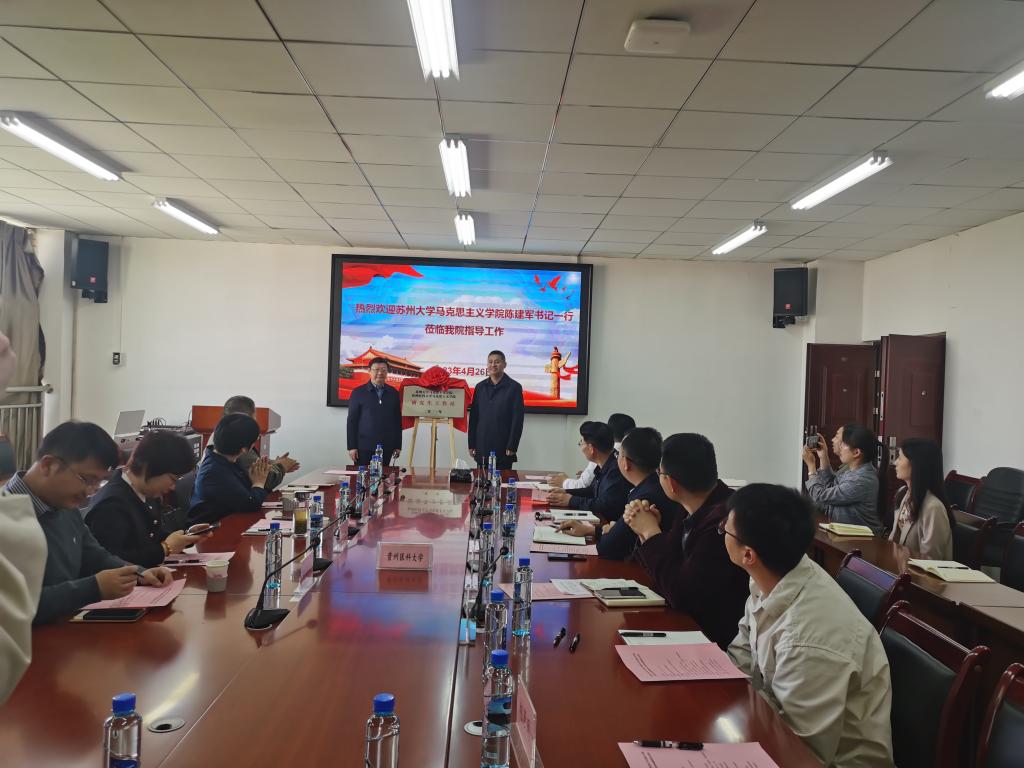 4月24日下午,陈建军一行6人到达学院后,马上开启了参观考察的第一项活动,慰问苏州大学国产自拍