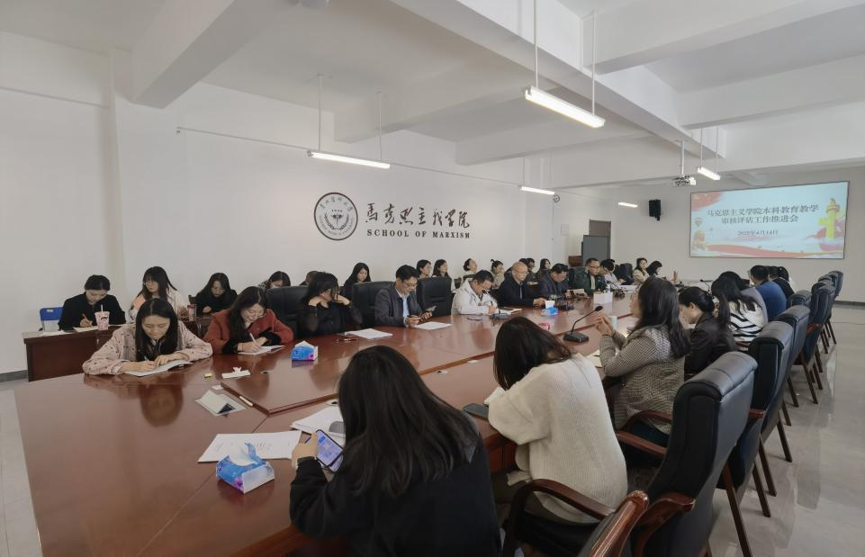 在学院会议室召开本科教育教学审核评估工作推进会,会议由院长黄鑫权主持并发表讲话,院党委书记杜凯、处级组织员李炳福、副院长禹辉映出席,学院全体教师参加。
