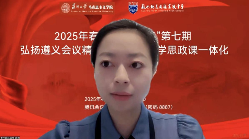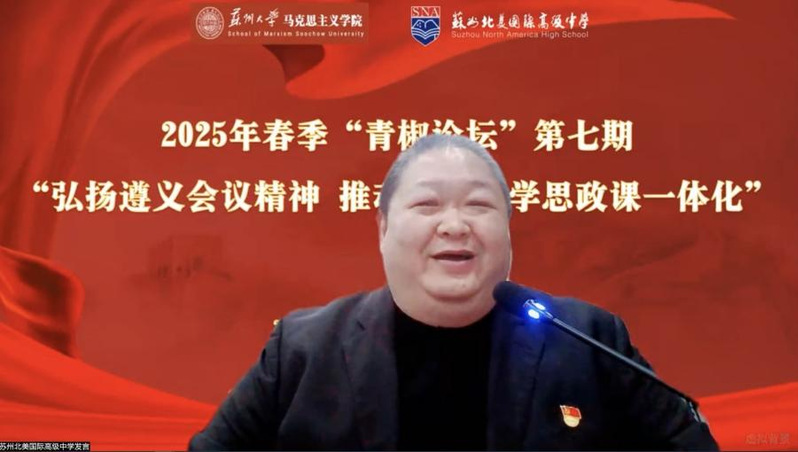 领衔发起的第七期“青椒论坛”之“弘扬遵义会议精神,推动大中小学思政课一体化”在苏州北美国际高级中学举办。来自全国近百所大中小学及相关单位的专家学者通过线上线下相结合的方式,共商新时代思政教育创新路径,助力大中小学思政课一体化建设。会议由北美高级中学高中教学部教务处副主任何虹飞主持。国产自拍