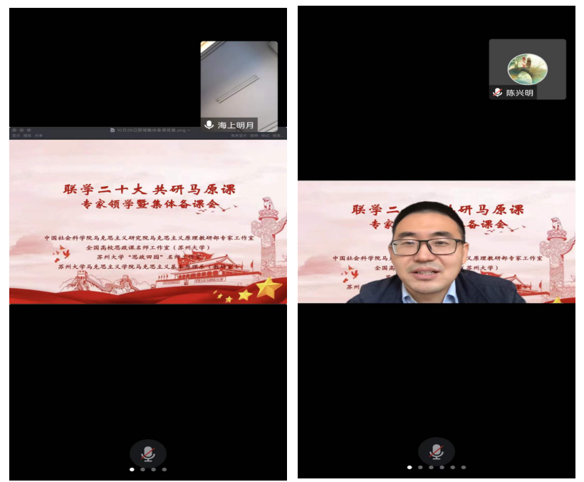 和苏州大学两校马克思主义基本原理教研室通过腾讯会议联合开展党的二十大精神“三进”工作集体备课会。会议由苏州大学马克思主义基本原理教研室主任张晓主持,教研室全体专兼职教师参加。