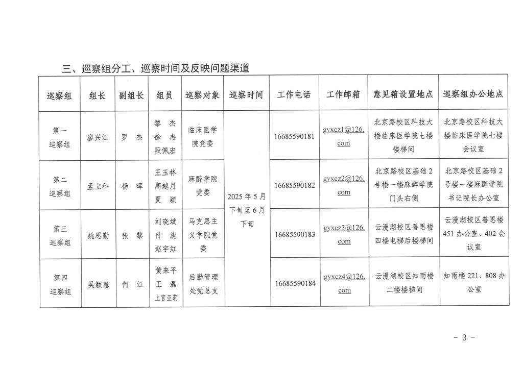 学校一届党委第六轮巡察第三巡查组进驻国产自拍 ,巡察期间设值班电话:16685590183,邮政信箱:[email protected];在云漫湖校区善思楼一楼大厅和四楼电梯后楼梯间设意见箱。巡察组受理电话的时间为工作日周一至周五9:00—17:00。巡察组主要受理国产自拍 党委领导班子成员和重点岗位负责人问题的来信来电来访,重点是关于违反政治纪律、组织纪律、廉洁纪律、群众纪律、工作纪律和生活纪律等方面的问题。