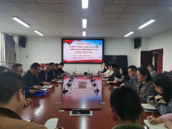 党委在善思楼(南)7楼会议室开展学习贯彻习近平新时代中国特色社会主义思想主题教育读书班总结会暨党委理论学习中心组2023年第二次集中研讨会。会议由学院党委书记、党史党建研究中心主任黄鑫权主持。学院党委理论学习中心组其他成员出席;副院长张国才和副科级以上干部(含教研室负责人)列席。