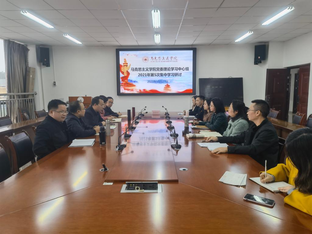 党委在善思楼7楼会议室召开理论学习中心组2021年第5次集中学习研讨。党委书记黄鑫权主持会议并作中心发言;院长杨成兰,正处级组织员陆法钢,党委副书记王万江,党委委员蒋谨慎、禹辉映出席;各科室、教研室主任(含主持工作的负责人)列席参加。