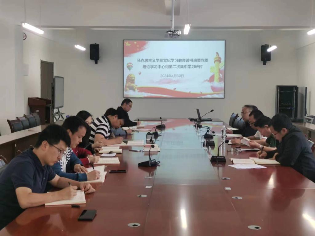 党纪学习教育读书班暨党委理论学习中心组集中研讨会在云漫湖校区善思楼433会议室召开,会议由学院党委书记黄鑫权主持,学院科级以上干部参加。