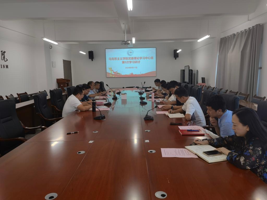 在云漫湖校区善思楼会议室召开2024年第5次党委理论学习中心组会议,围绕党的二十届三中全会精神开展集中学习研讨。会议由学院党委书记杜凯主持,学院党委副书记兼纪委书记王万江、副院长禹辉映、党委委员凌富亚出席,各科(室)负责人列席。