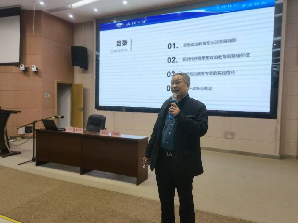 戴正清结合自身的求学经历、工作经历,从“思想政治教育专业的发展缩影”“新时代呼唤思想政治教育的聚魂价值”“思想政治教育专业的实践路径”“思政人的职业规划”四个方面,深入浅出的阐释了思想政治教育专业的意义、作用与实践价值,并给思想政治教育专业的同学在职业规划上提出了宝贵建议。